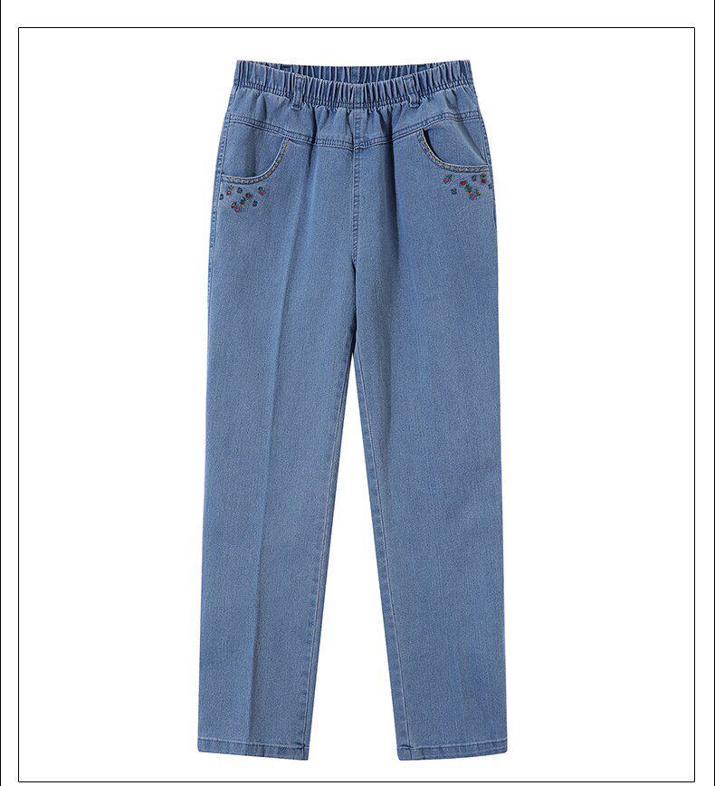 Features: Lightweight, Slight stretch, Elastic waistband, Full-length, Straight leg, Pocket detail, Embroidery craftsmanship